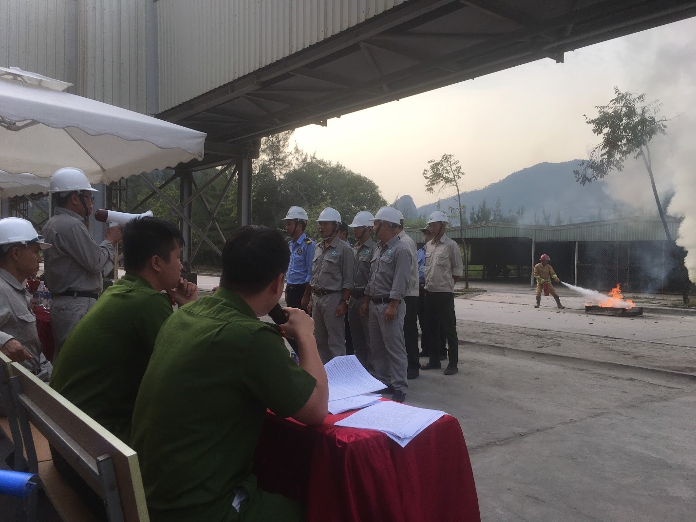 Công tác chuẩn bị các điều kiện cho buổi thực tập được lãnh đạo hai đơn vị (Công ty CP Xi măng Cẩm Phả và Phòng Cảnh sát PCCC & CNCH) đặc biệt quan tâm hướng dẫn, chỉ đạo. Lực lượng PCCC & CNCH được phân công cụ thể, chi tiết bao gồm 8 tổ (Tổ khói lửa, tổ y tế, tổ người bị nạn, tổ báo cháy, cắt điện, tổ hướng dẫn, cứu người bị nạn, tổ cứu tài sản, tổ chữa cháy, tổ bảo vệ). Quá trình tổ chức được thực hiện nghiêm túc, triển khai tập luyện theo đúng các yêu cầu phục vụ đã đề ra.