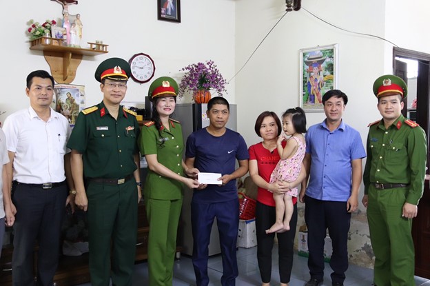 Công ty Cổ phần Xi măng Cẩm Phả phối hợp cùng Công an phường Cẩm Thạch tặng quà cho gia đình công nhân có hoàn cảnh đặc biệt
