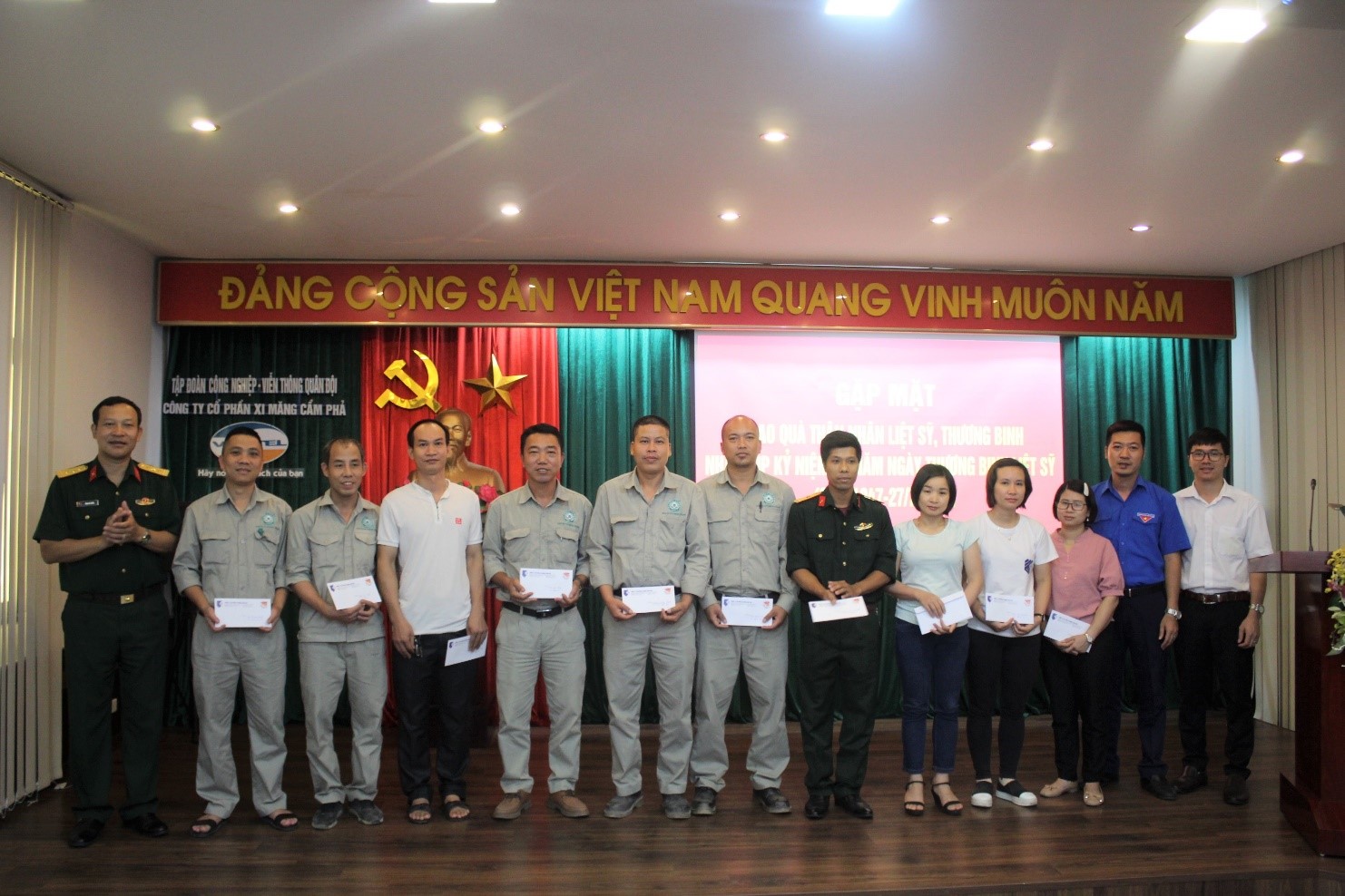Cùng ngày, Công ty đã tổ chức buổi gặp mặt trao quà cho thân nhân của CBCNV là Liệt sỹ, Thương binh tại Nhà máy chính và Chi nhánh phía Nam thông qua cầu truyền hình. Tham dự buổi gặp mặt có đ/c Thượng tá Tăng Bá Tuyên – Phó Tổng Giám đốc Công ty, đ/c Trần Quang Hân – Phó Giám đốc Chi nhánh phía Nam, đ/c Nguyễn Văn Trang – Trưởng phòng Tổ chức – Chính trị cùng các đ/c chỉ huy cơ quan đơn vị, BCH các tổ chức quần chúng và gần 50 CBCNV là con của các Anh hùng Liệt sỹ, con các bác thương, bệnh binh, con các bác tham gia chiến đấu nhiễm chất độc Da cam/Điôxin. Theo đó Công ty đã trao tặng 79 suất quà cho 5 CBCNV là con của các Anh hùng Liệt sỹ, 42 CBCNV con các bác thương binh, 17 CBCNV con các bác bệnh binh và 15 đ/c CBCNV con các bác tham gia chiến đấu nhiễm chất độc Da cam/Điôxin.