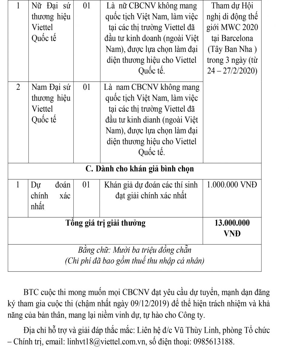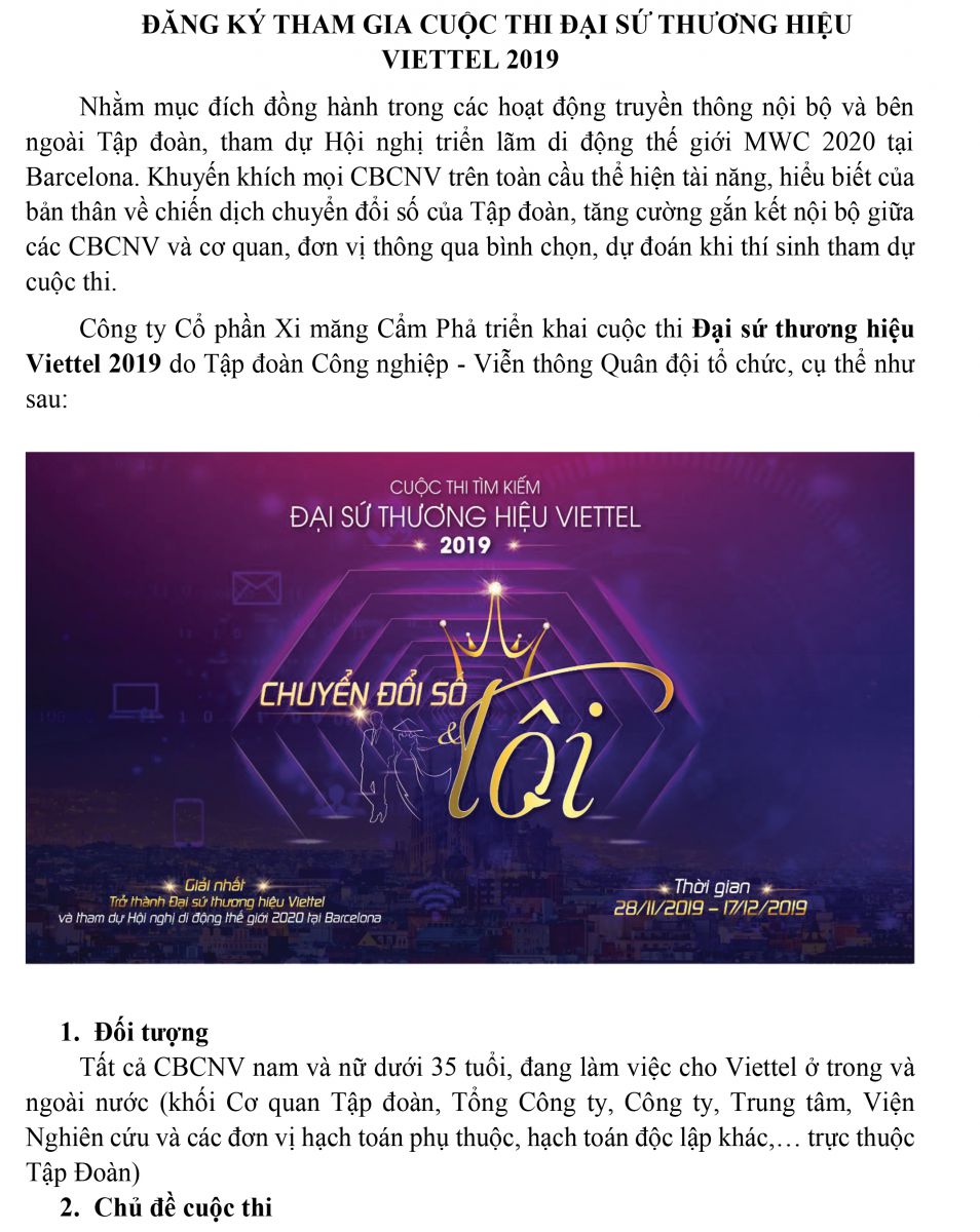 Đăng ký tham gia cuộc thi Đại sứ thương hiệu VIETTEL 2019