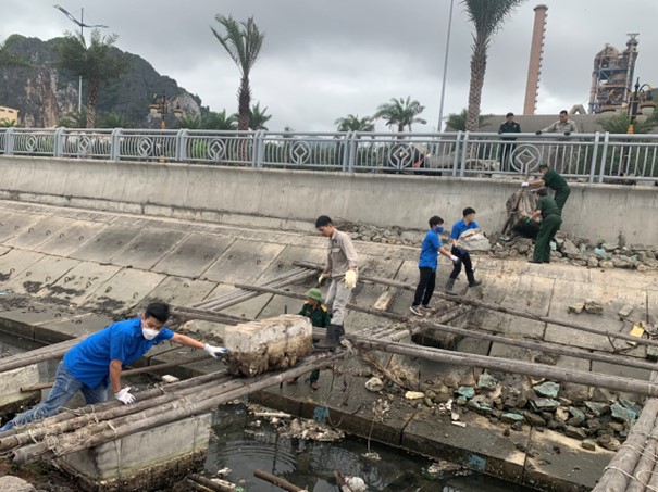 Đoàn thanh niên Công ty Cổ phần Xi măng Cẩm Phả phối hợp với phường Cẩm Thạch thu dọn rác thải khu vực đường bao biển Hạ Long – Cẩm Phả
