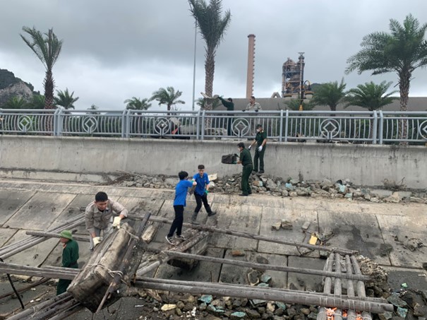 Với chiều dài trên 2km bờ biển, khi thuỷ triều rút đã để lại rất nhiều rác thải từ các phao xốp, bè mảng và rác thải nhựa sinh hoạt gây mất mỹ quan và môi trường biển. Trên 40 thành viên của hai đơn vị cùng 02 xe vận tải đã thu gom hơn 120m3 rác thải, được vận chuyển đưa về mặt bằng Công ty Cổ phần Xi măng Cẩm Phả xử lý.