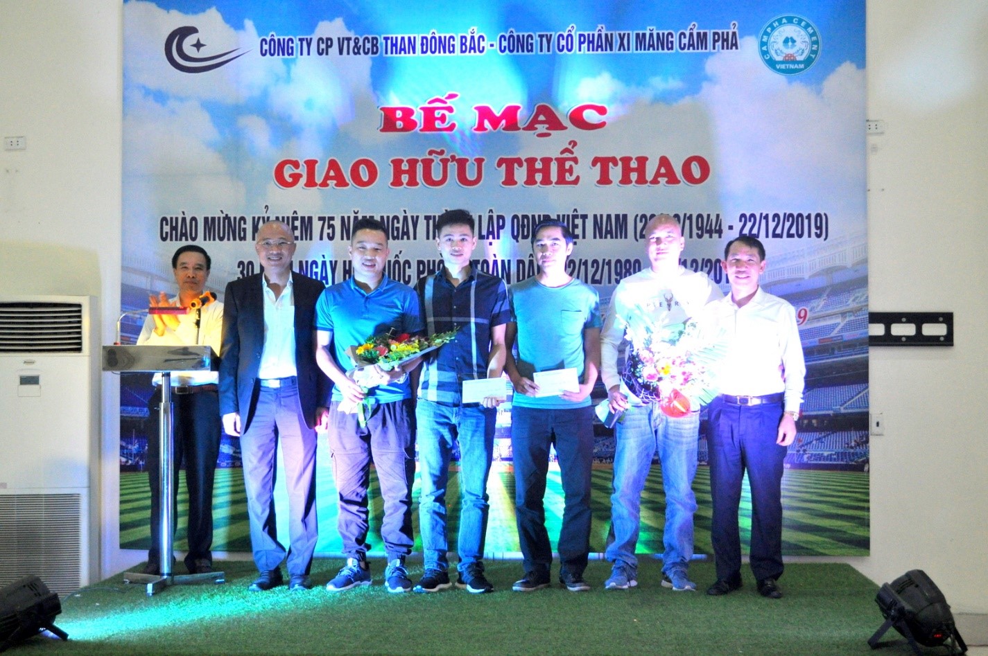Hướng tới chào mừng kỷ niệm 75 năm ngày thành lập Quân đội nhân dân Việt Nam (22/12/1944-22/12/2019), 30 năm ngày hội Quốc phòng toàn dân (22/12/1989-22/12/2019), đồng thời tăng cường mối quan hệ hợp tác giữa hai đơn vị và tạo thuận lợi cho hoạt động SXKD năm 2019, ngày 21/11/2019, Công ty CP Xi măng Cẩm Phả và Công ty CP Vận tải và Chế biến Than Đông Bắc đã tổ chức buổi giao hữu thể thao. Tham dự buổi giao hữu có sự tham gia của Hội đồng quản trị, Ban Tổng Giám đốc, trưởng các đơn vị, đại diện các tổ chức Quần chúng, vận động viên và CBCNV đội văn nghệ, đội cổ vũ thể thao của cả hai đơn vị.