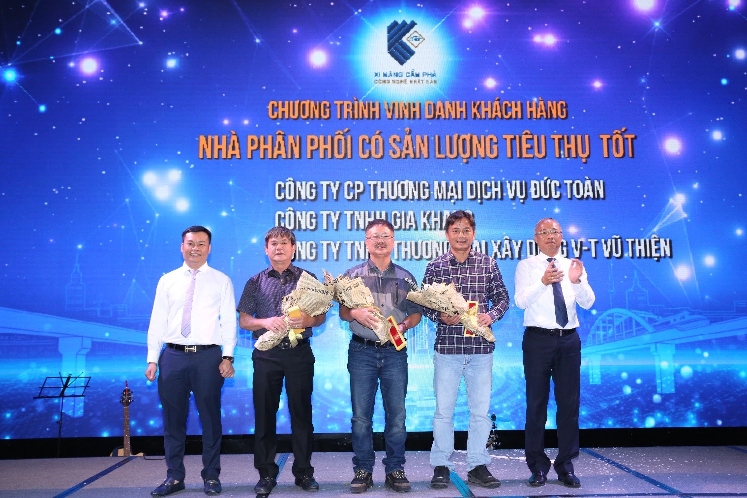 Hội nghị đã tổ chức vinh danh những nhà phân phối Xi măng Cẩm Phả có sản lượng ổn định và tiêu thụ lớn nhất trong năm 2019 và 6 tháng đầu năm 2020; Đó là Công ty CP Siêu thị Vật liệu xây dựng Thế giới nhà, Công ty TNHH Nghĩa Thành, Công ty TNHH Chấn Long, Công ty CP Thương mại dịch vụ Đức Toàn,…