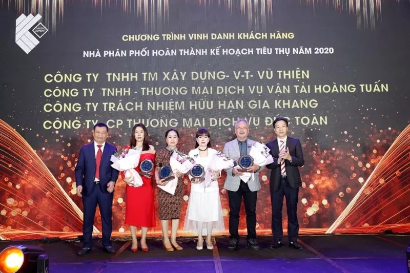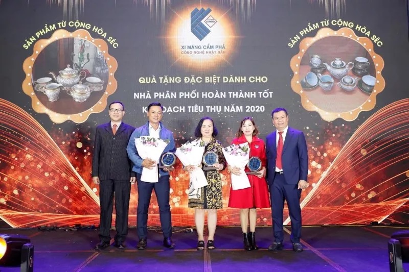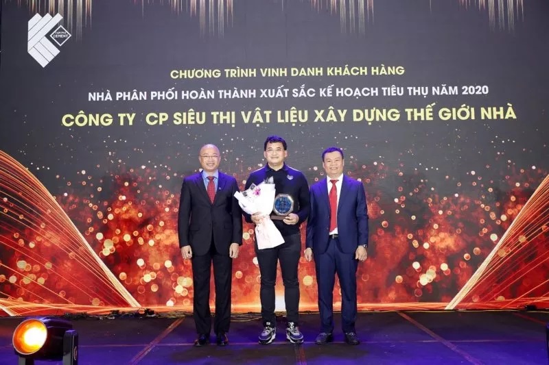 Tại Hội nghị có nhà phân phối là Công ty CP Siêu thị vật liệu xây dựng Thế giới nhà đã vinh dự được vinh danh hoàn thành xuất sắc kế hoạch tiêu thụ năm 2020; cùng với đó là 03 nhà phân phối hoàn thành tốt kế hoạch sản lượng tiêu thụ (Công ty TNHH Chấn Long, Công ty TNHH Nghĩa Thành, Công ty TNHH Hòa Thành Tiến); 04 nhà phân phối hoàn thành kế hoạch sản lượng tiêu thụ (Công ty TNHH Thương mại xây dựng V-T Vũ Thiện, Công ty TNHH TM DV Vận tải Hoàng Tuấn, Công ty TNHH Gia Khang, Công ty CP TM DV Đức Toàn) cũng vinh dự được vinh danh và nhận 01 biểu trưng và 01 bộ bình trà sang trọng, nhập khẩu từ Cộng Hòa Séc.