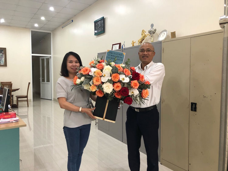 Theo đó, nữ khách hàng hiện đang là Nhà phân phối của Công ty Cổ phần Xi măng Cẩm Phả được tặng một lẵng hoa bày tỏ sự cảm ơn những đóng góp của họ vào sự phát triển chung của công ty.