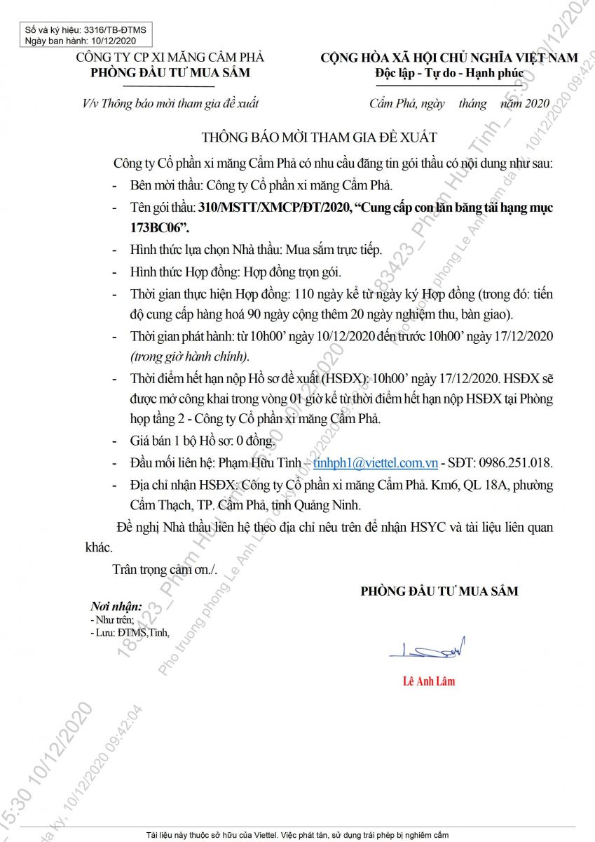 Thông báo mời tham gia đề xuất cug cấp con lăn băng tải hạng mục 173BC06
