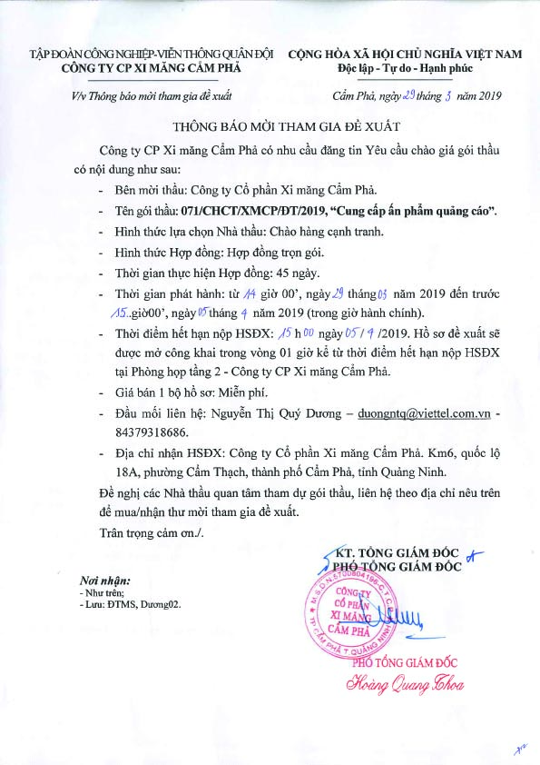 Thông báo mời tham gia đề xuất cung cấp ấn phẩm quảng cáo