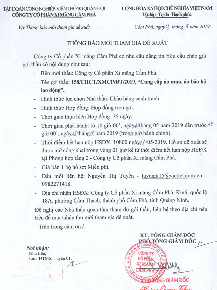 Thông báo mời tham gia đề xuất cung cấp áo mưa, áo bảo hộ lao động