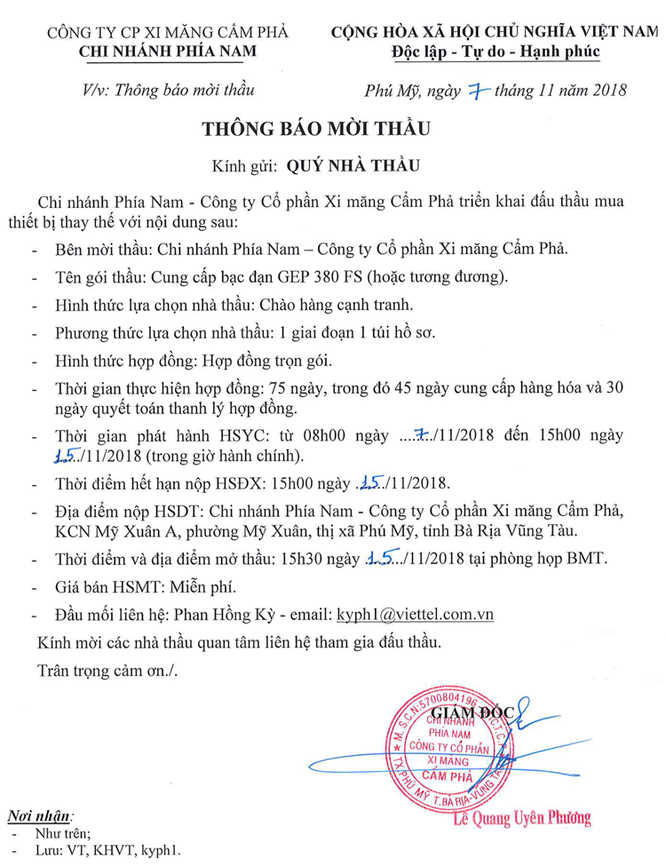 Thông báo mời tham gia đề xuất Cung cấp bạc đạn GEP 380 FS (hoặc tương đương)