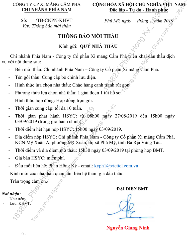 Thông báo mời tham gia đề xuất Cung cấp bộ chỉnh lưu điện