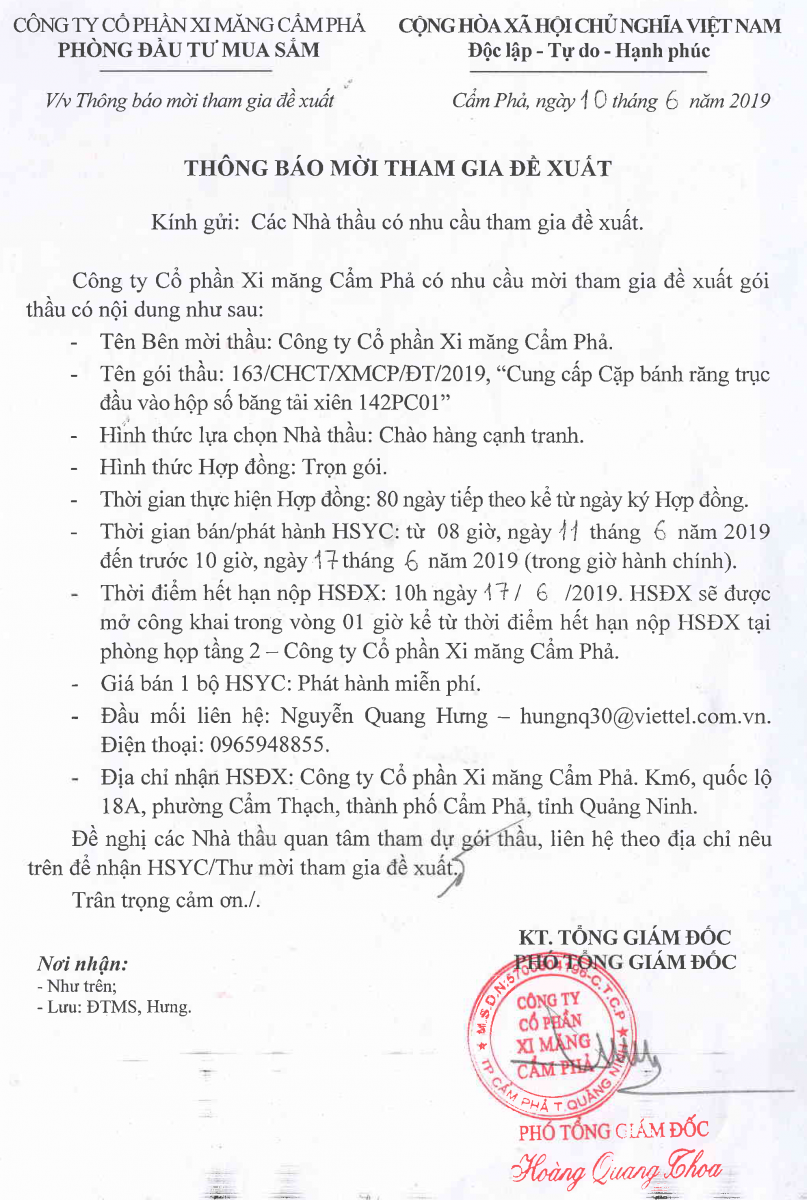 Thông báo mời tham gia đề xuất cung cấp Cặp bánh răng trục đầu vào hộp số băng tải xiên 142PC01