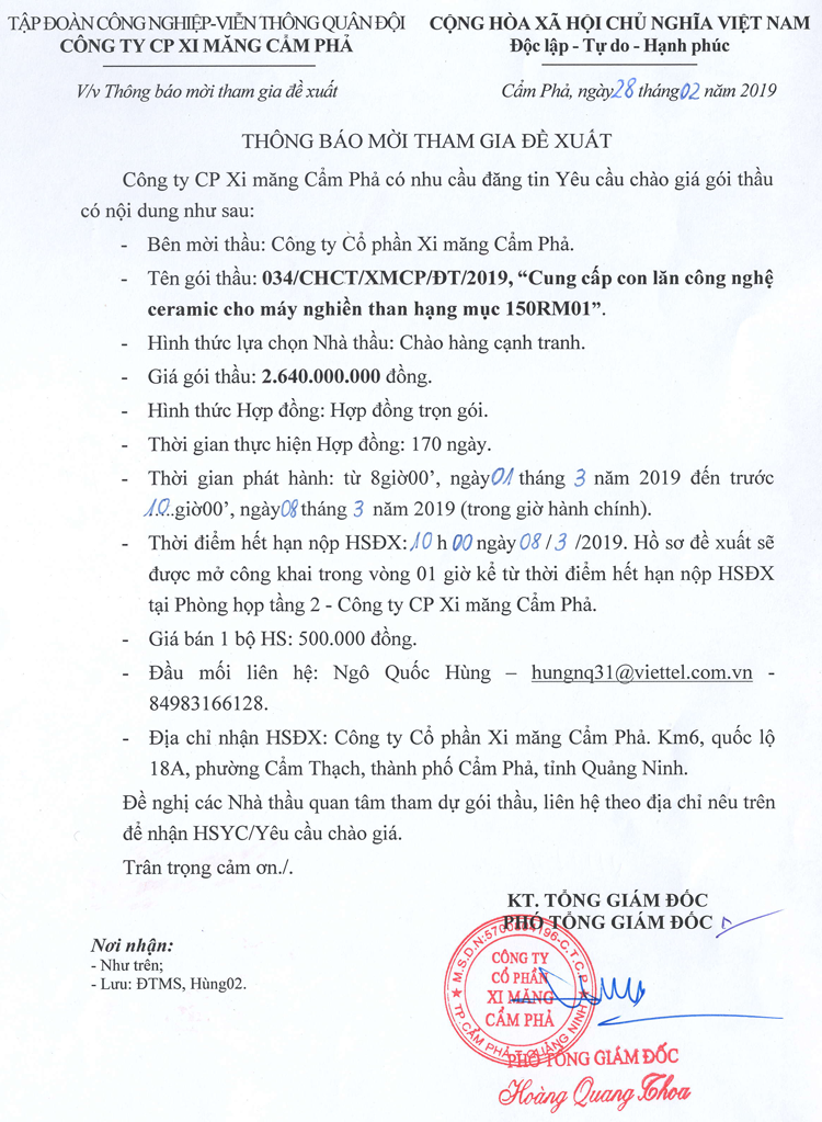 Thông báo mời tham gia đề xuất cung cấp con lăn ceramic cho máy nghiền than hạng mục 150RM01