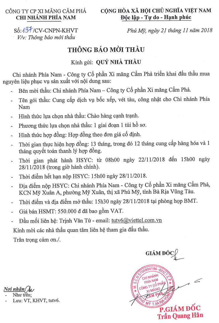 Thông báo mời tham gia đề xuất cung cấp dịch vụ bốc xếp, vét tàu, công nhật cho Chi nhánh Phía Nam