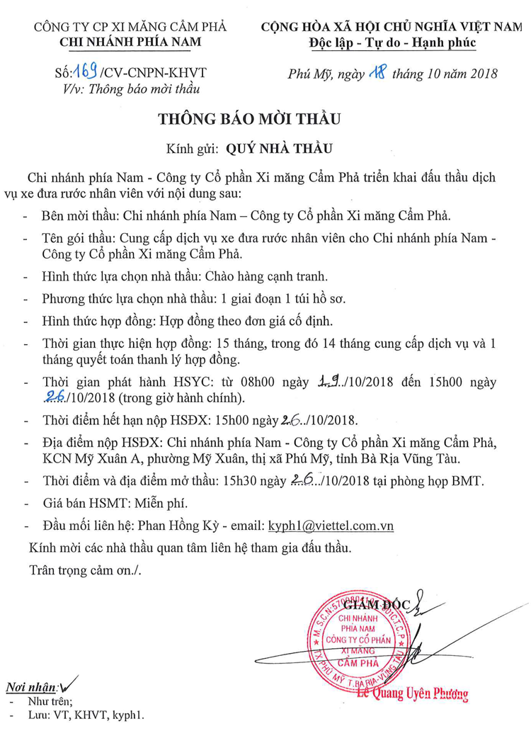 Thông báo mời tham gia đề xuất cung cấp dịch vụ xe đưa đón CBCNV cho Chi nhánh phía Nam