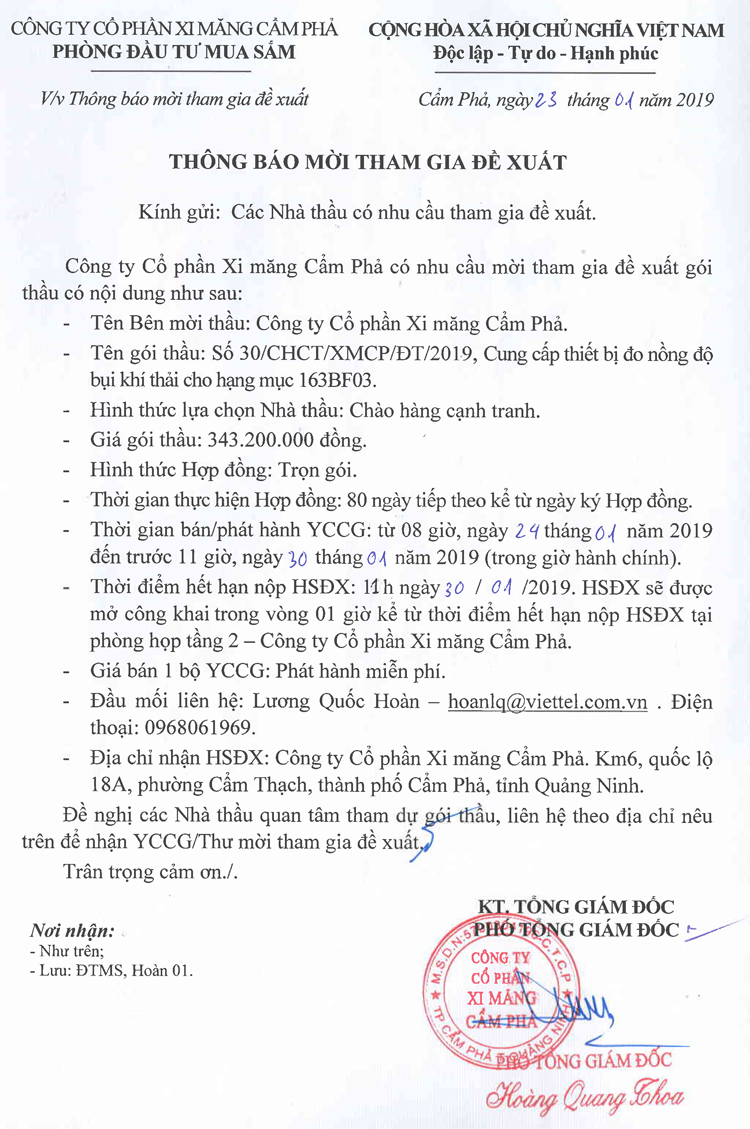 Thông báo mời tham gia đề xuất cung cấp thiết bị đo nồng độ bụi khí thải cho hạng mục 163BF03