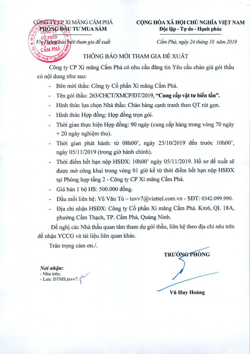 Thông báo mời tham gia đề xuất cung cấp vật tư biến tần