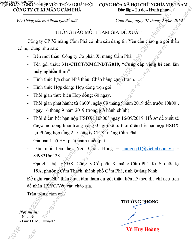 Thông báo mời tham gia đề xuất cung cấp vòng bi máy nghiền than