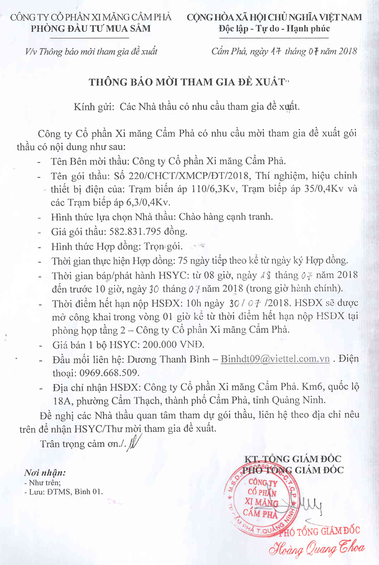 Thông báo mời tham gia đề xuất gói thầu thí nghiệm, hiệu chỉnh thiết bị điện