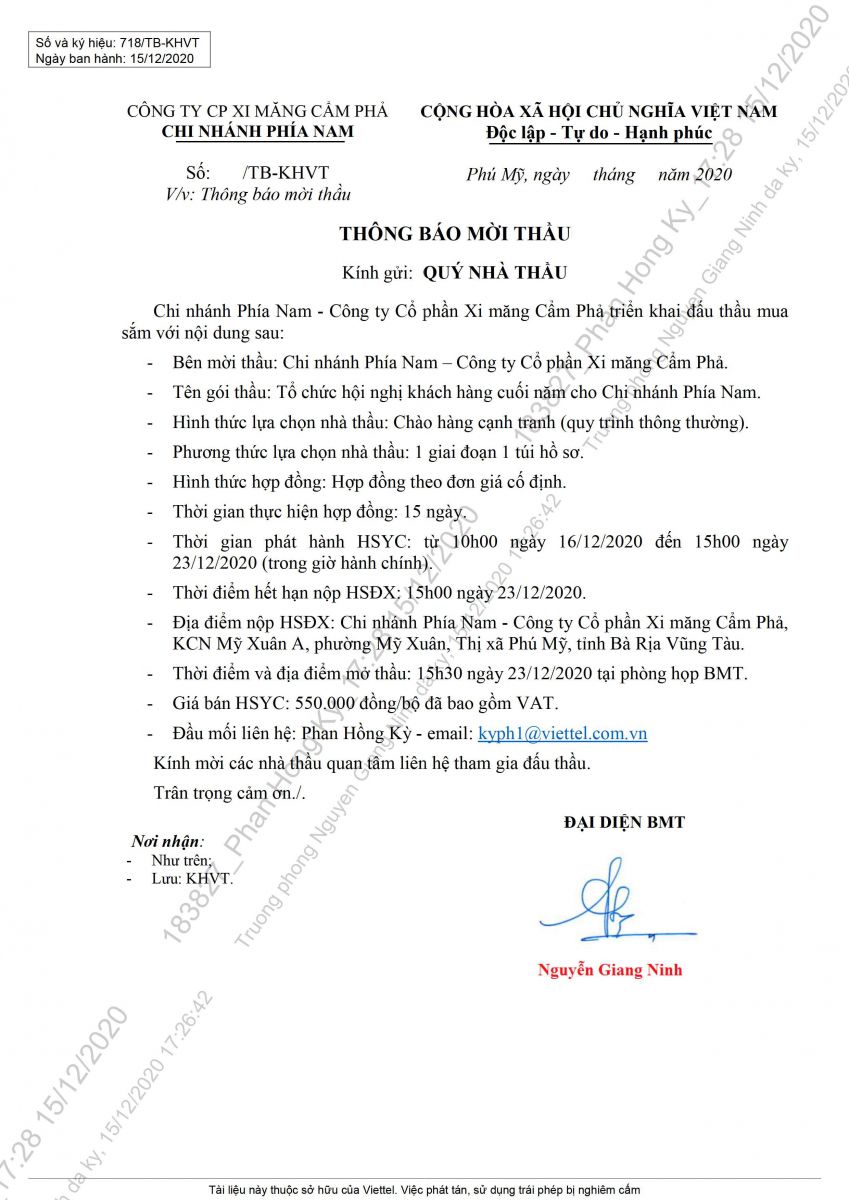 Thông báo mời tham gia đề xuất tổ chức hội nghị khách hàng cuối năm cho Chi nhánh Phía Nam