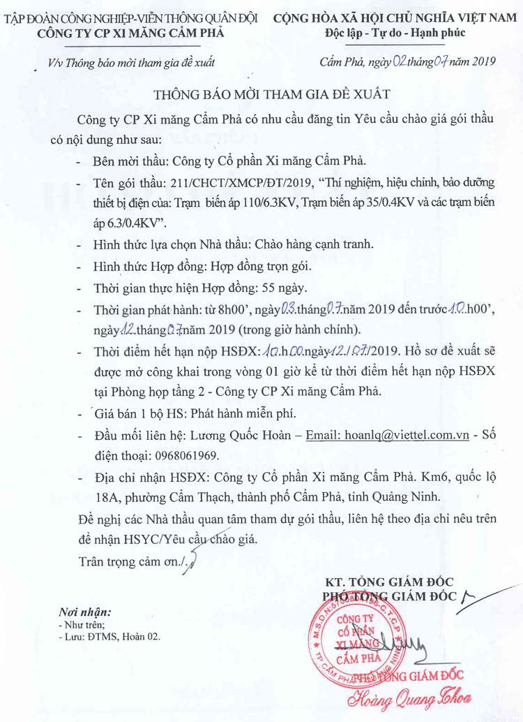 Thông báo mời tham gia thí nghiệm, hiệu chỉnh, bảo dưỡng thiết bị điện của trạm biến áp