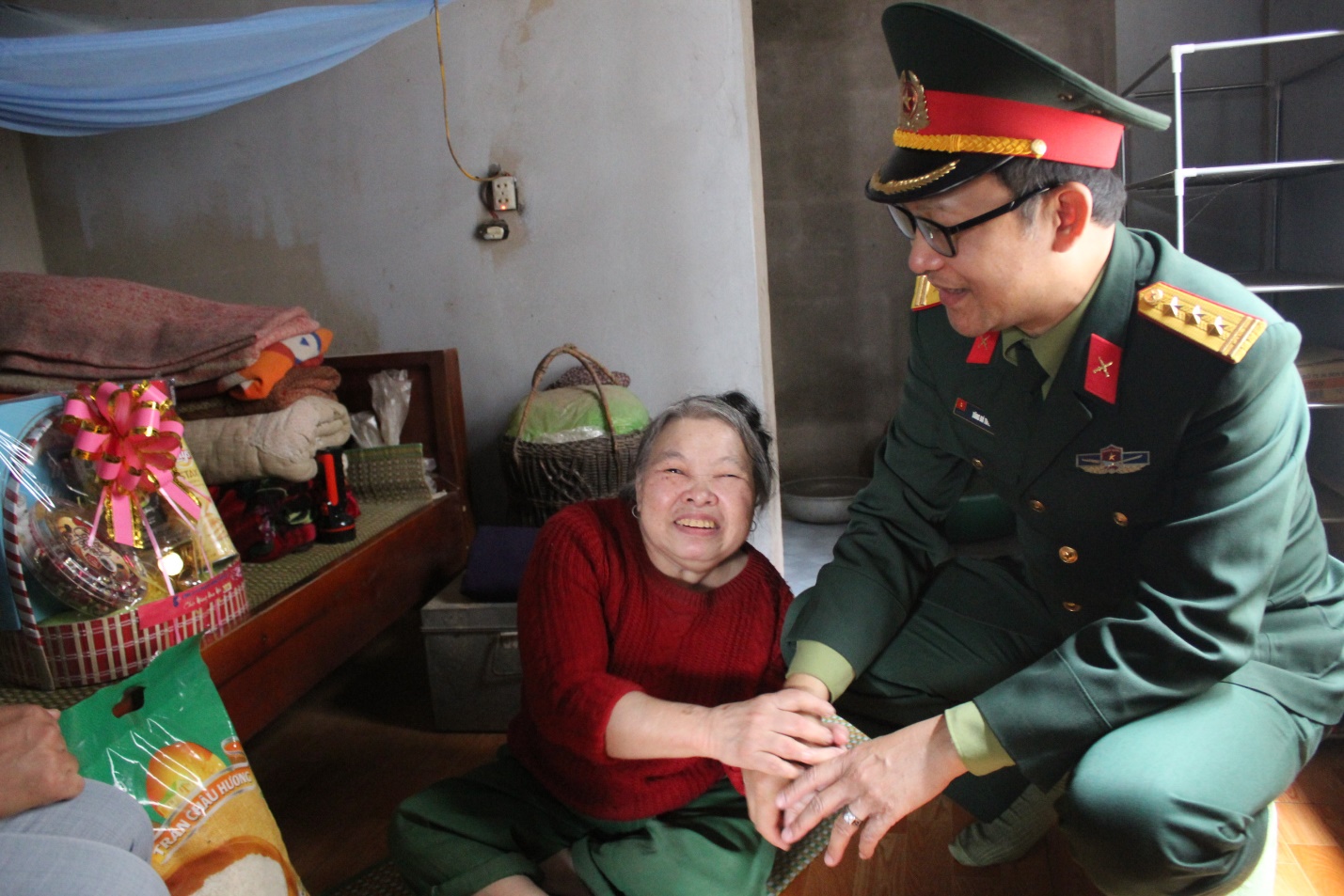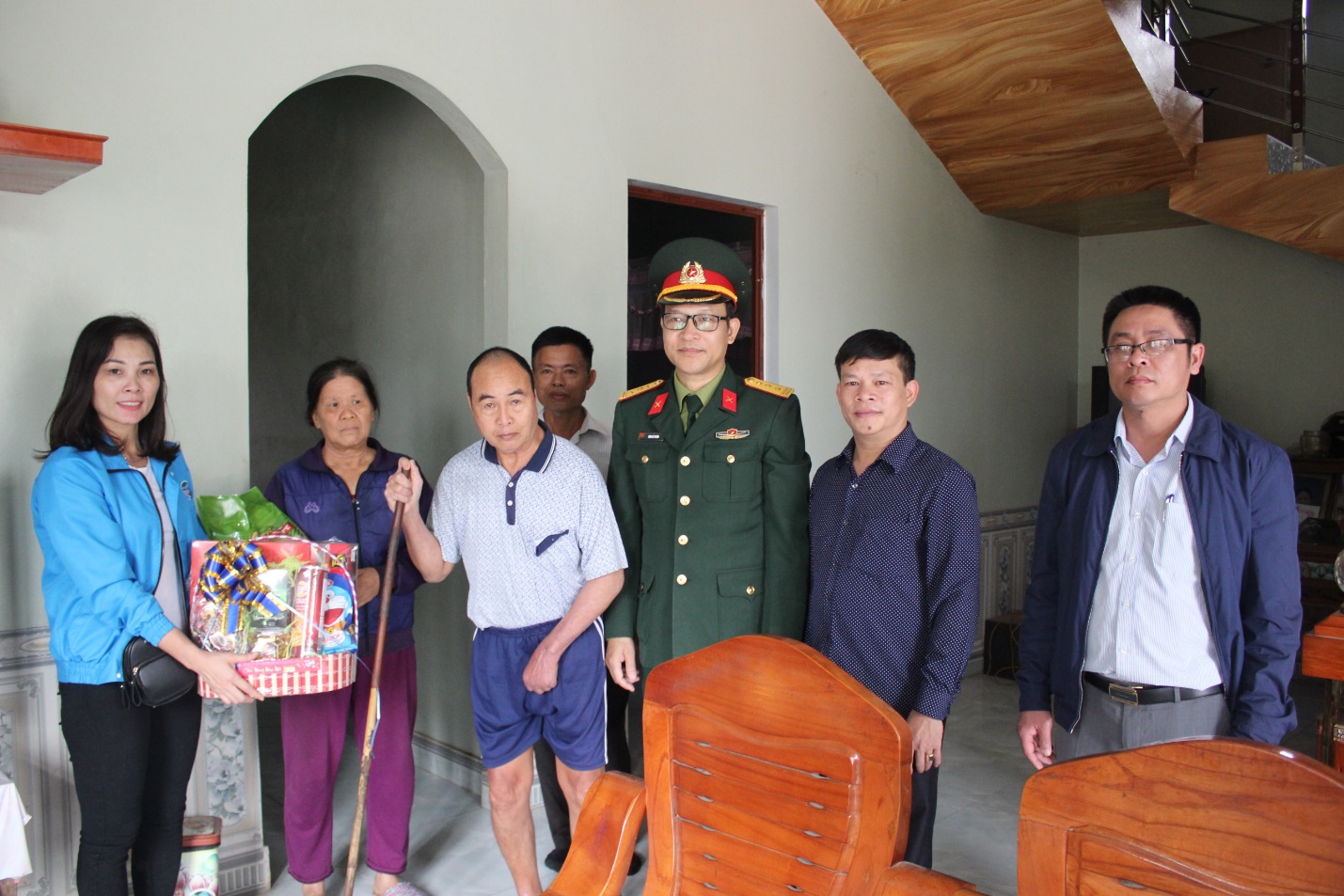 Tiếp nối chương trình, đoàn tình nguyện đã đến tận nhà chúc Tết, thăm hỏi, động viên và trao tặng quà Tết đến 8 gia đình có hoàn cảnh khó khăn, sống neo đơn và khuyết tật tại xã. Món quà như đem không khí Tết Canh tý năm 2020 đến gần hơn với họ.