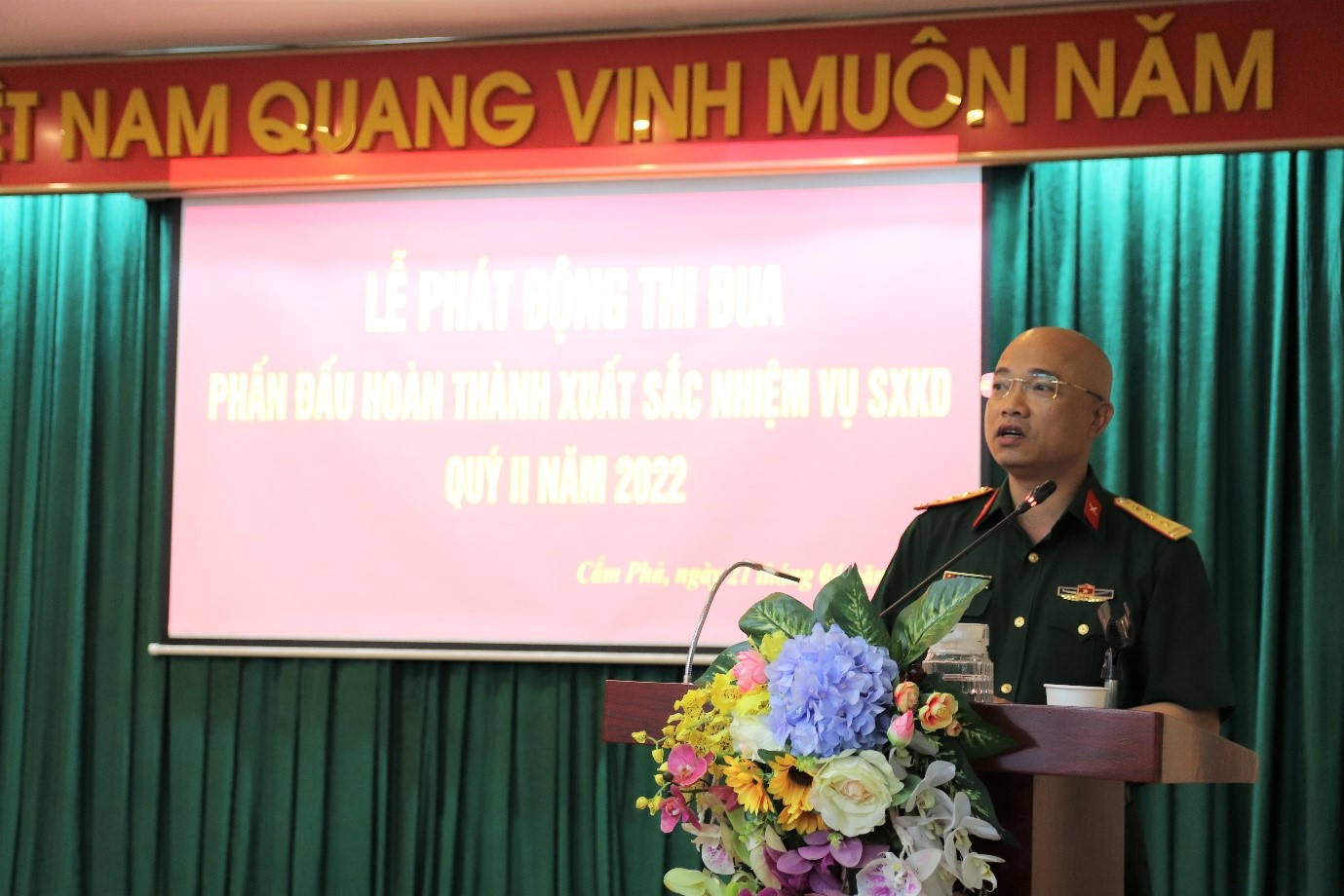 Tại buổi lễ phát động, thay mặt Ban Tổng Giám đốc Công ty, đồng chí Trung tá Ngô Thế Hưng – Đảng ủy viên, Phó Tổng Giám đốc Công ty đã báo cáo nội dung, chỉ tiêu thi đua quý II năm 2022. Trong đó có các nội dung trọng tâm như: Tiêu thụ Xi măng sản lượng 268.270 tấn, Clinker 160.000 tấn; Đảm bảo quá trình hoạt động của hệ thống thiết bị được duy trì thường xuyên, an toàn, ổn định, có chất lượng, đạt hiệu quả cao nhất; Kiểm soát chặt chẽ việc chấp hành kỷ luật lao động và an toàn lao động tại cơ quan, đơn vị; Hoàn thành công tác tổ chức Đại hội Đoàn Thanh niên; Phối hợp cùng Văn phòng Tập đoàn tổ chức Hội thao phòng cháy chữa cháy toàn Tập đoàn; Tăng cường ứng dụng CNTT vào các lĩnh vực (tập trung cho quản lý, hỗ trợ bán hàng)…