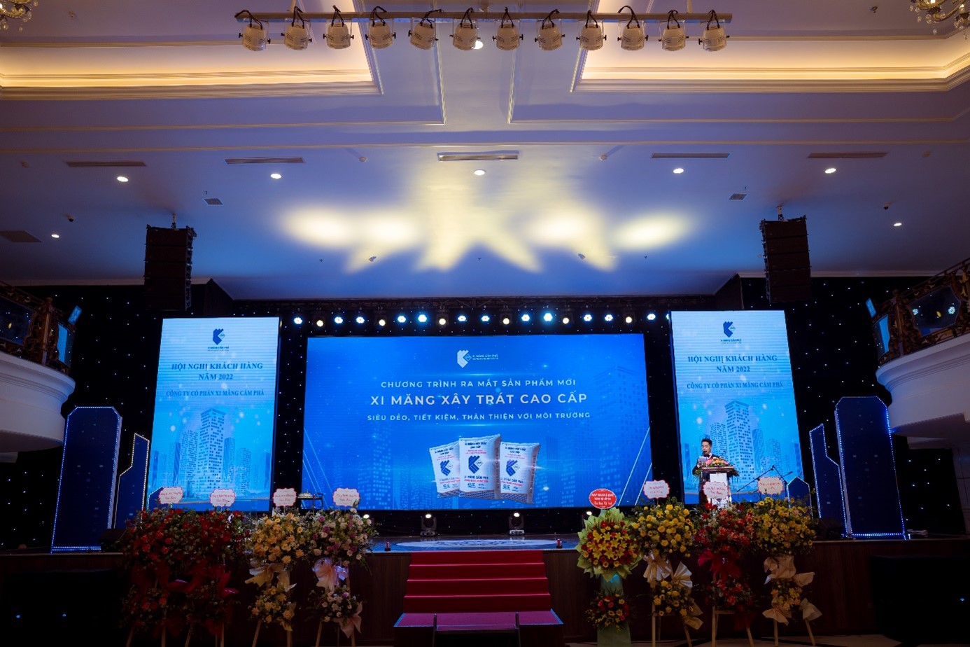 Điểm nhấn của chương trình là màn ra mắt sản phẩm mới “Xi măng xây trát cao cấp” của Công ty đầy ấn tượng. Để đáp ứng yêu cầu ngày càng cao của khách hàng và xu thế phát triển “Sản xuất xanh”, Ban lãnh đạo và các kỹ sư, chuyên gia hàng đầu của Nhà máy Xi măng Cẩm Phả đã nghiên cứu và sản xuất thành công sản phẩm mới là “Xi măng xây trát cao cấp” – “Siêu dẻo, tiết kiệm và thân thiện với môi trường”. Đây là 3 đặc điểm nổi trội, hứa hẹn mang lại tính cạnh tranh cao. Với thông điệp “Đột phá để thành công”, Công ty mong muốn Quý Khách hàng, Quý Nhà Phân phối tiếp tục hỗ trợ đơn vị để sản phẩm mới được người tiêu dùng đón nhận.