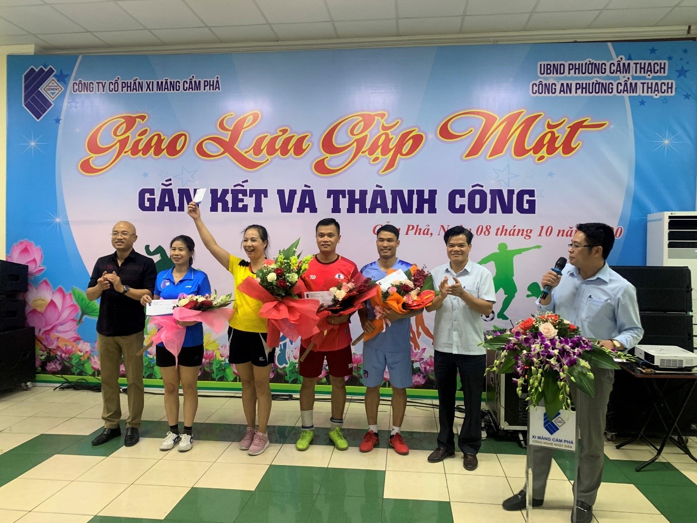 Ngay khi kết thúc buổi tuyên truyền, tiếp nối chuỗi hoạt động là chương trình giao hữu thể thao giữa Công ty CP Xi măng Cẩm Phả và UBND, Công an phường Cẩm Thạch gồm 2 bộ môn (thi đấu bóng đá nam và bóng chuyền hơi nữ) tại sân bóng Công ty. Đến dự và cổ vũ cho buổi giao hữu có các đồng chí lãnh đạo chỉ huy, cán bộ, BCH các Tổ chức quần chúng của 3 đơn vị và rất nhiều các cổ động viên nhiệt tình là CBCNV Xi măng Cẩm Phả và UBND, Công an phường Cẩm Thạch.