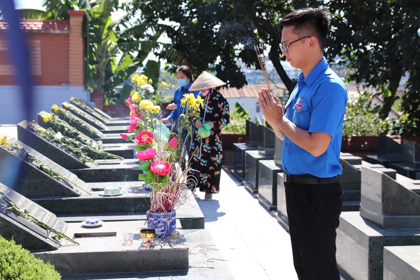 Tại đây, Ban lãnh đạo Công ty cùng gần 40 cán bộ, đoàn viên, thanh niên, hội viên đến từ các Tổ chức quần chúng và các đơn vị trong Công ty đã tham gia lễ dâng hương, đặt vòng hoa tưởng niệm các anh hùng, liệt sĩ; tham gia dọn vệ sinh và thắp hương trên các phần mộ, nơi yên nghỉ của những người con ưu tú của quê hương, đất nước, những người đã anh dũng hy sinh vì độc lập tự do của dân tộc.
